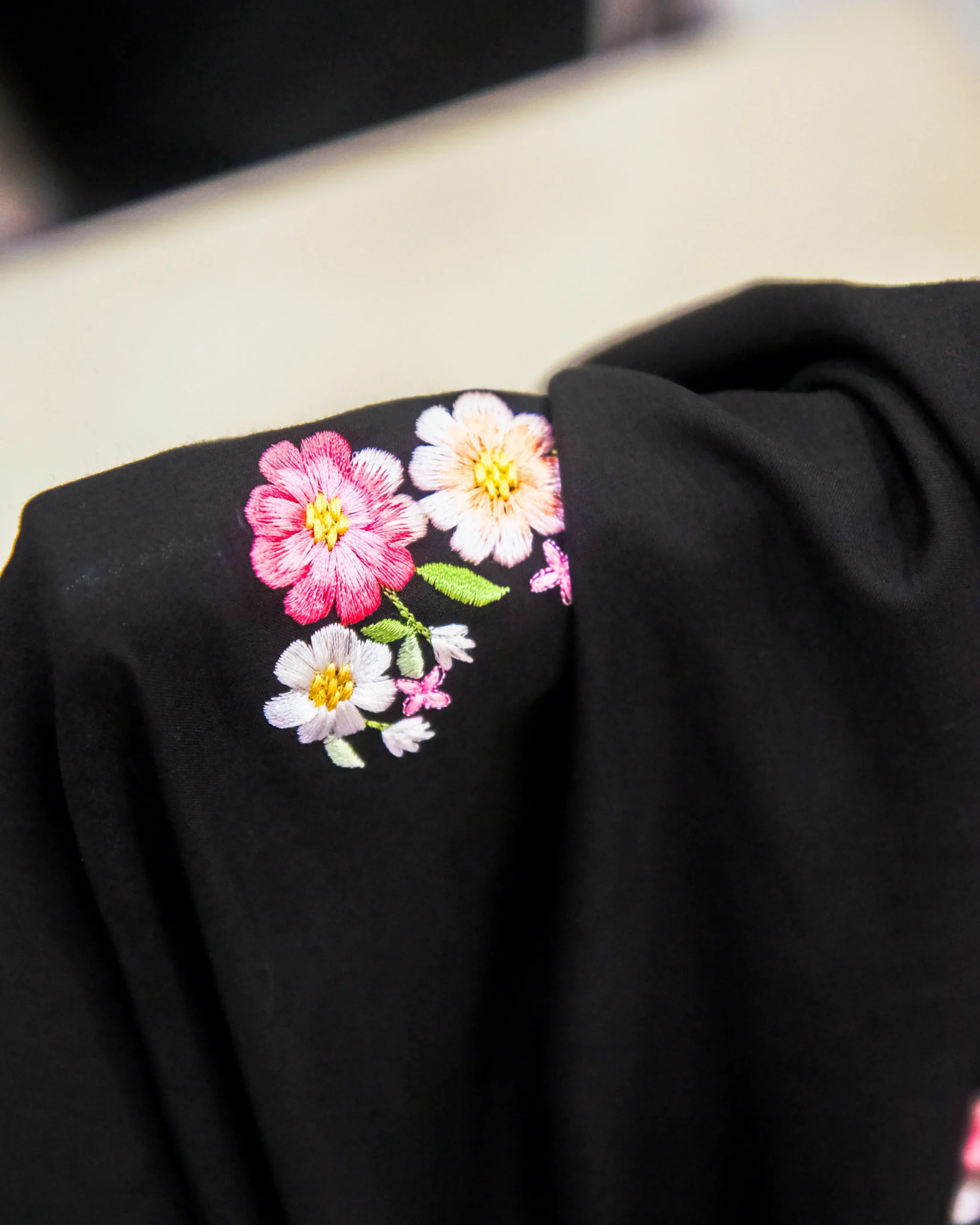 Elegant roses spread evenly on our signature black chaada